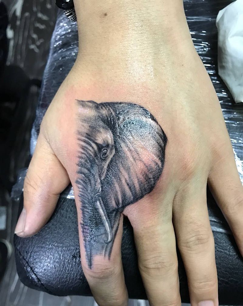 当前位置: 首页 >辽宁省大连市纹身店-时间刺客纹身图案>写实手背小象纹身图片