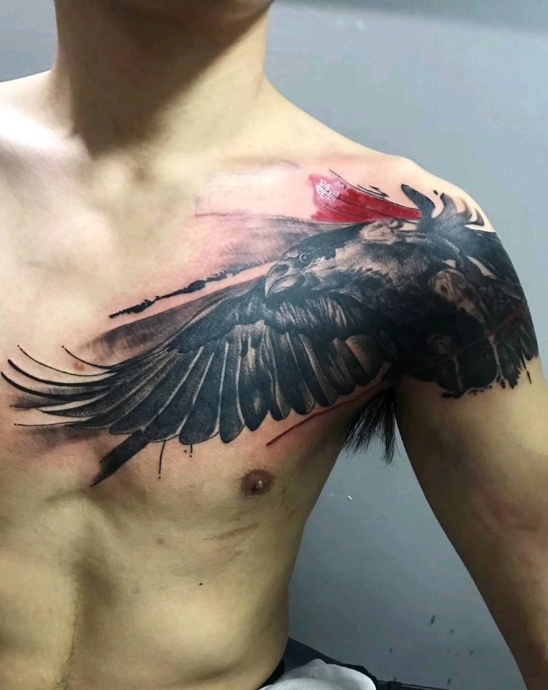 写实老鹰半甲纹身图片_胸部欧美写实纹身图案