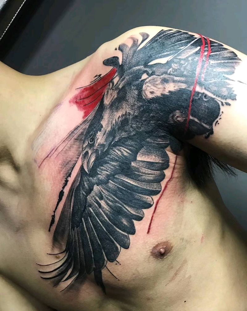 写实老鹰半甲纹身图片_胸部欧美写实纹身图案