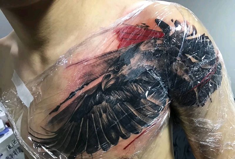 当前位置: 首页 >辽宁省大连市纹身店-时间刺客纹身图案>写实老鹰半甲纹身图片_胸部欧美写实纹身图案