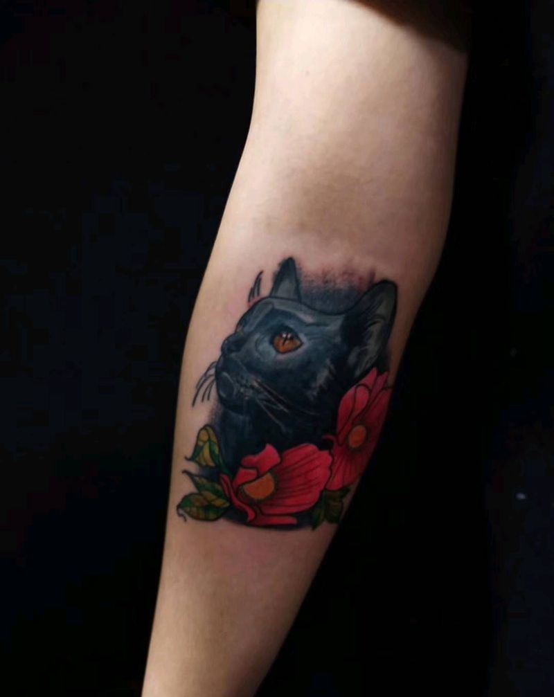 当前位置: 首页 >辽宁省大连市纹身店-时间刺客纹身图案>school猫遮盖纹身图片_手臂New School纹身图案