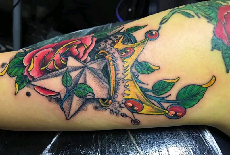 new school玫瑰纹身图片_手臂New School纹身图案