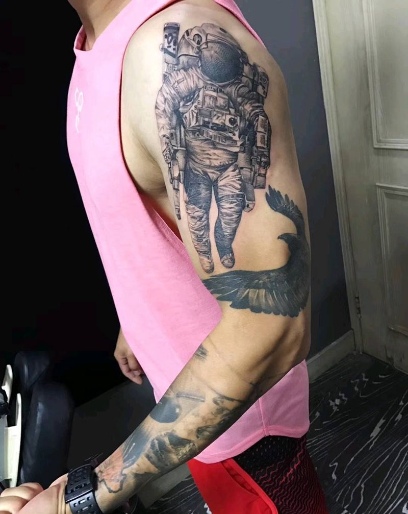 写实宇航员纹身图片_手臂欧美写实纹身图案