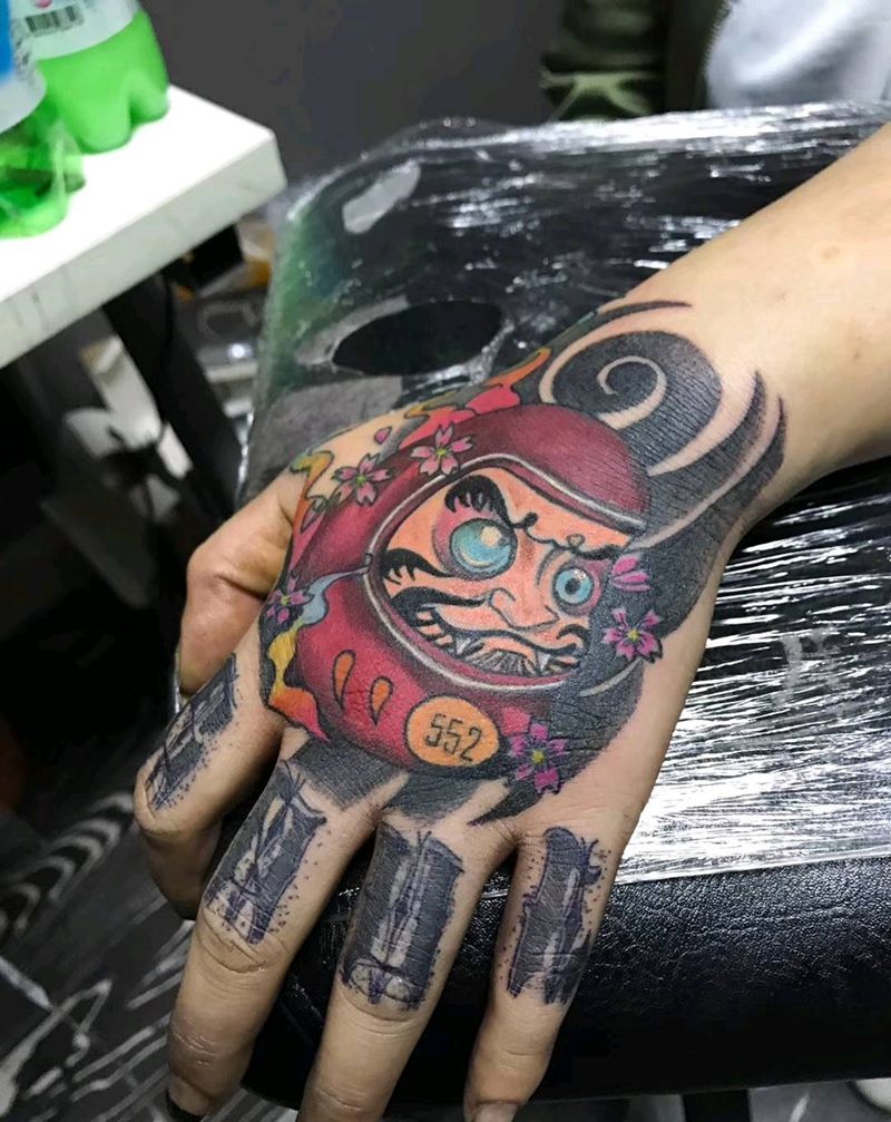 当前位置: 首页 >辽宁省大连市纹身店-时间刺客纹身图案>传统手背达摩蛋纹身图片_手部新传统纹身图案