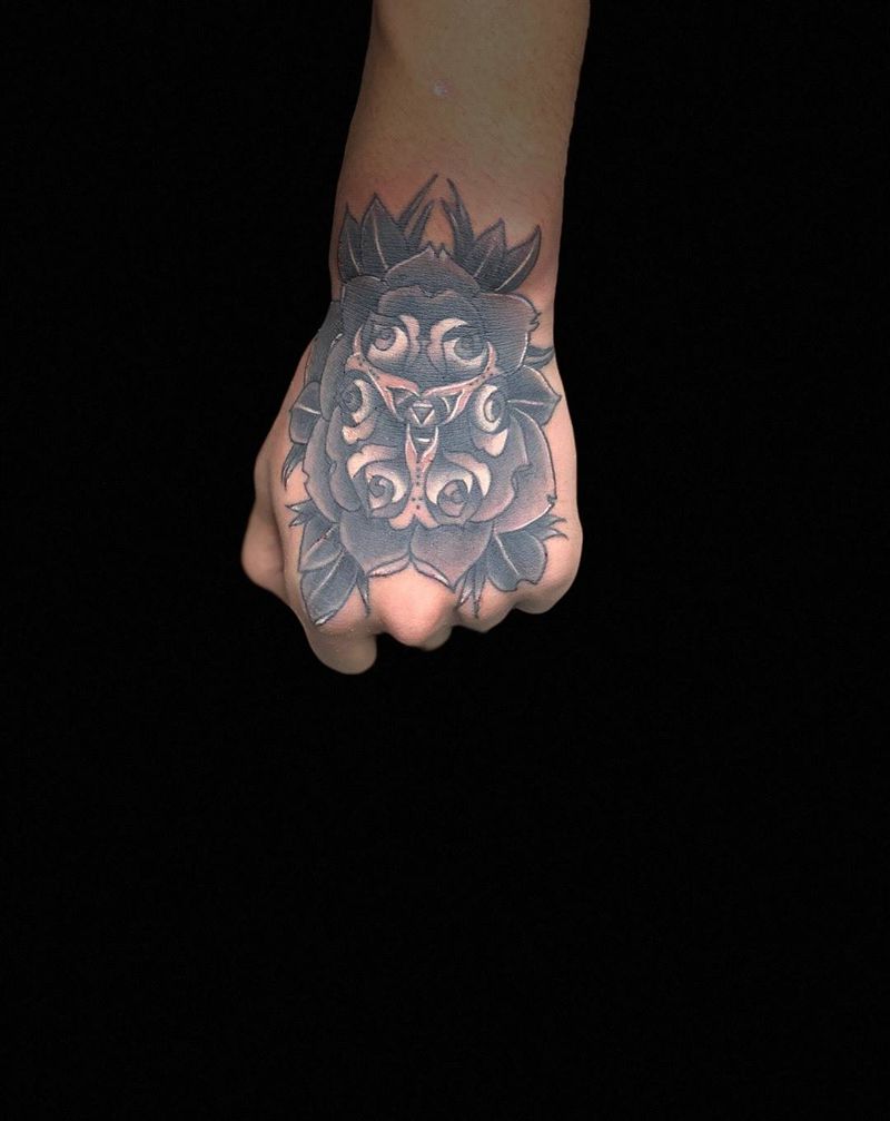 • 手背潮流时尚的玫瑰花眼睛纹身图案