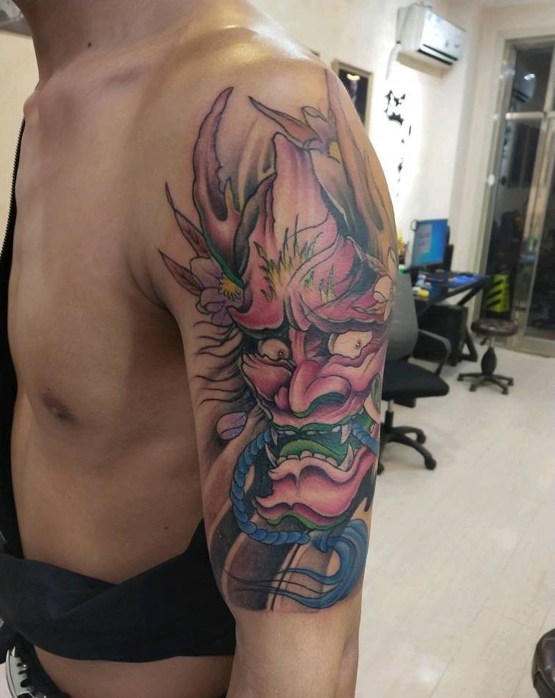 当前位置: 首页 >辽宁省大连市纹身店-永祥刺青纹身图案>大臂重彩班若纹身图片