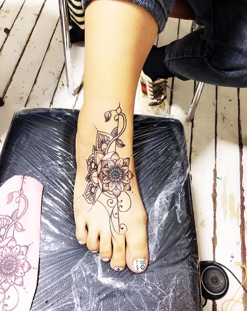 当前位置: 首页 >辽宁省大连市纹身店-趣纹身工作室纹身图案>字母 花纹身图片_脚部腿部新传统点刺纹身图案
