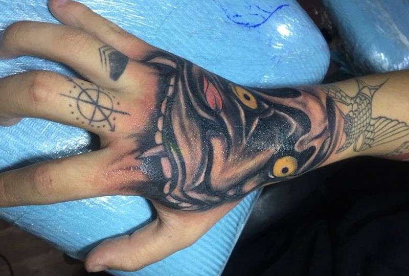 • 手背潮流时尚的玫瑰花眼睛纹身图案