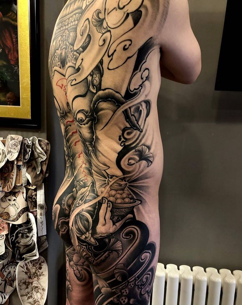当前位置: 首页 >辽宁省大连市纹身店-大连针痕刺青纹身图案>象神纹身图片_背部臀部新传统纹身图案