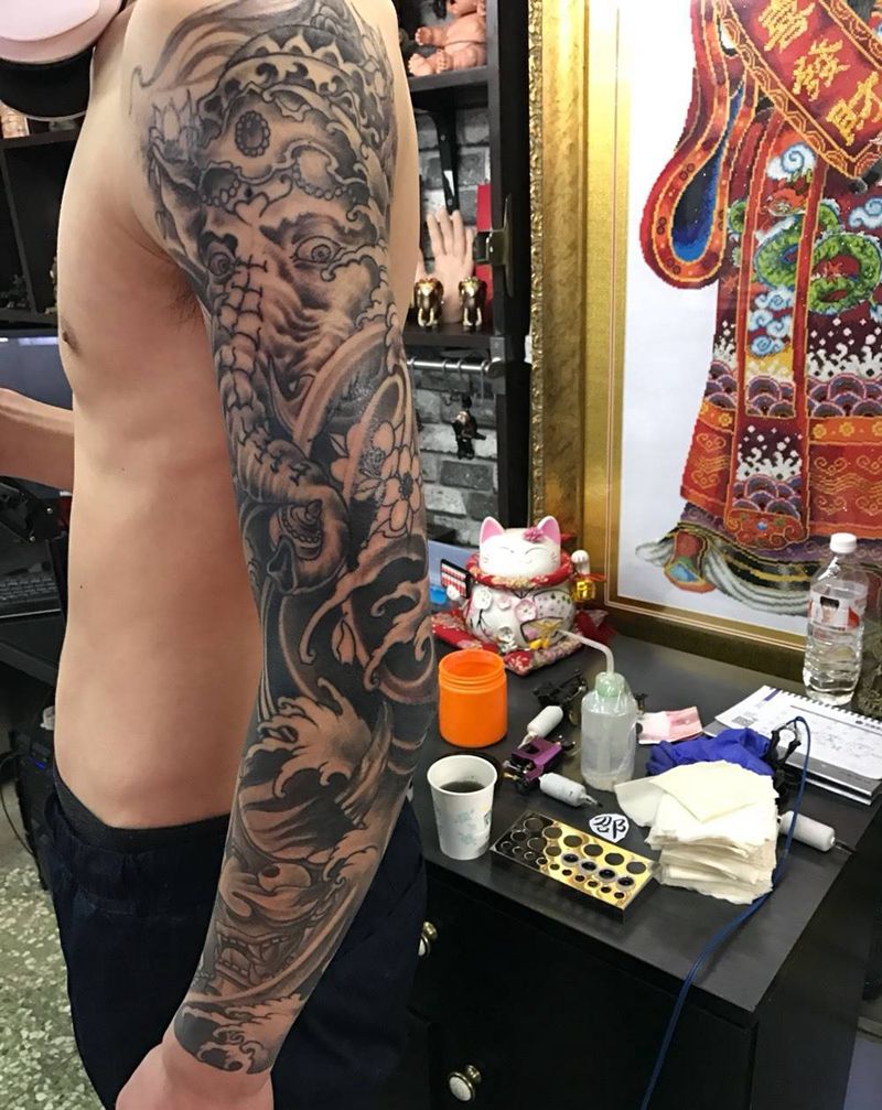 当前位置: 首页 >辽宁省大连市纹身店-大连针痕刺青纹身图案>接花臂纹身图片