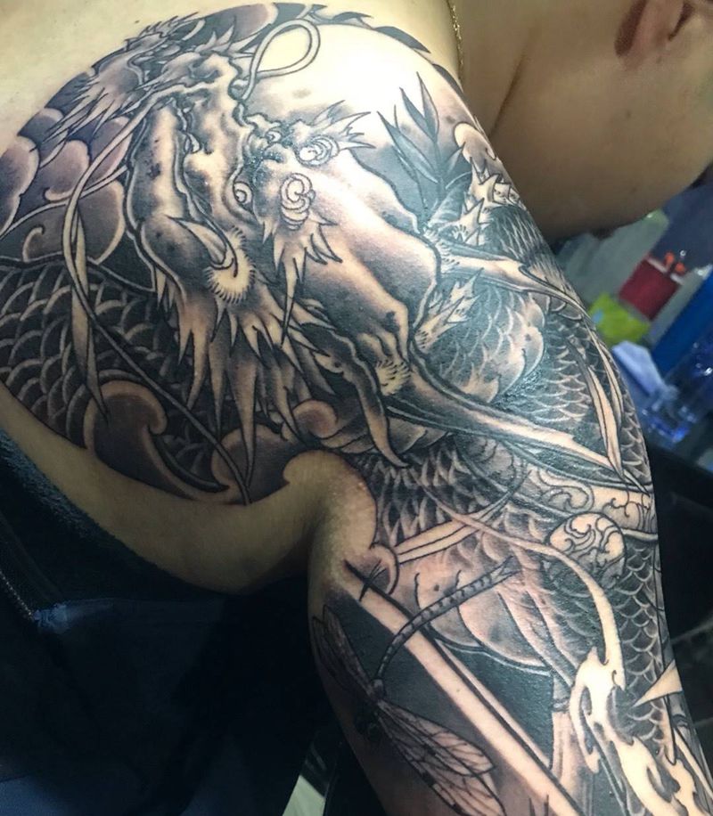 • T云龙九郎纹身图片_背部老传统云龙九郎纹身图案