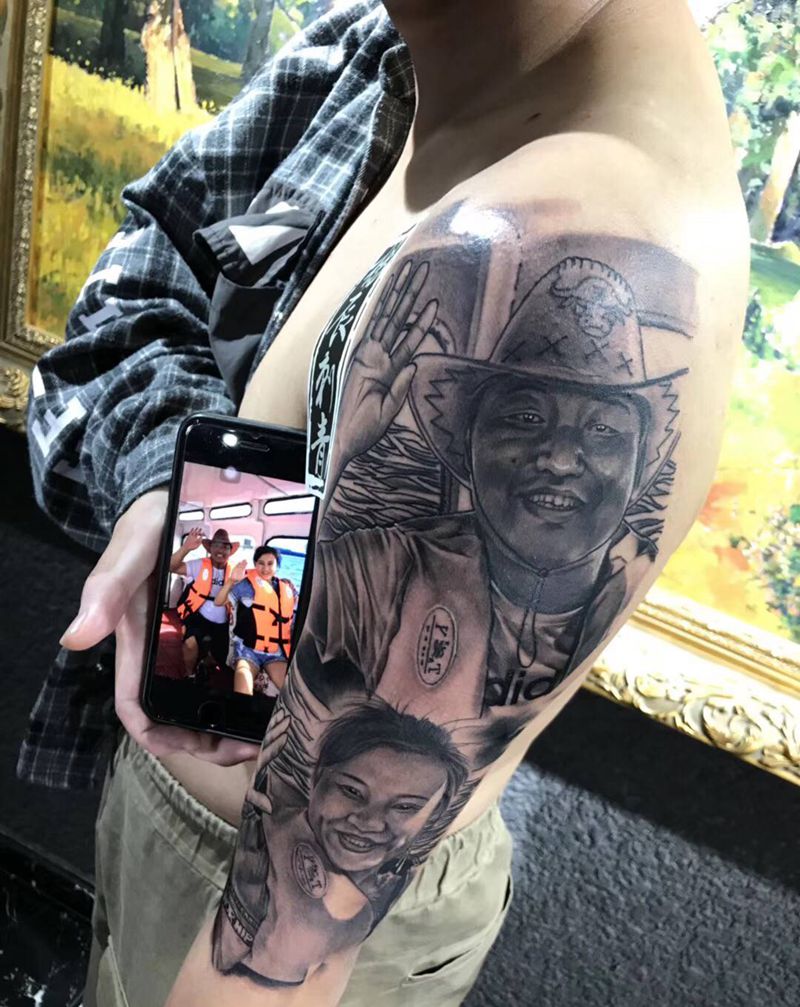 当前位置: 首页 >辽宁省大连市纹身店-杨辰刺青纹身图案>父母旅游照片纹身图片_手臂欧美写实纹身图案