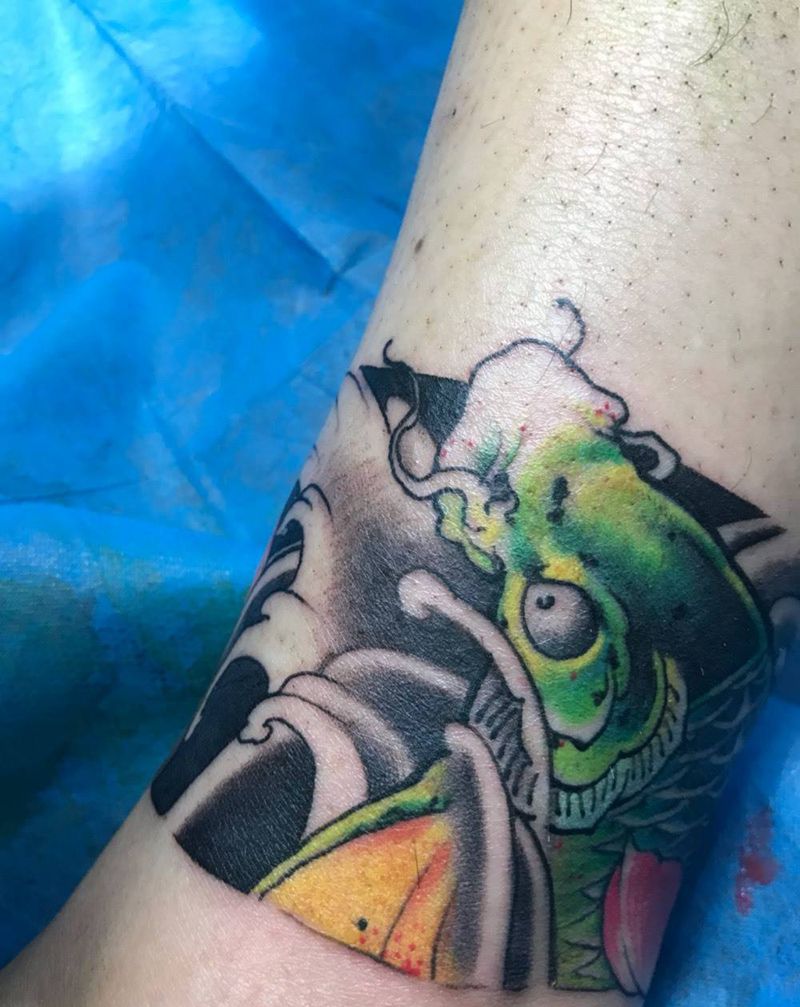 • T网红王老大花腿龙纹身图片_腿部新传统纹身图案
