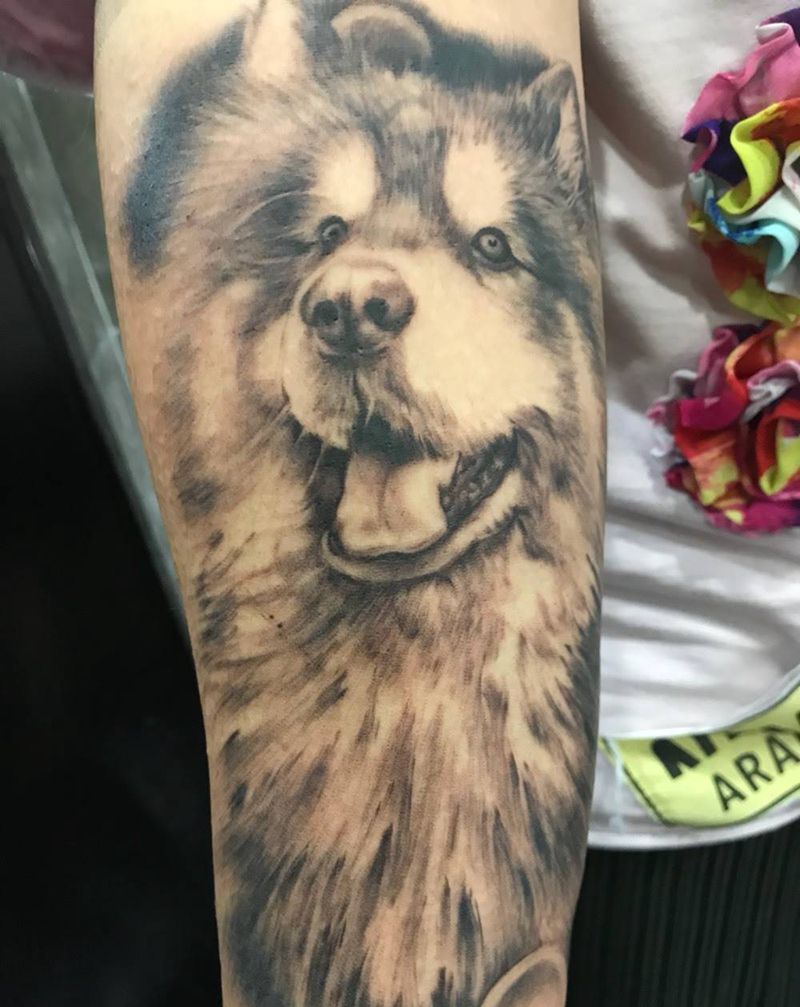 当前位置: 首页 >辽宁省大连市纹身店-杨辰刺青纹身图案>小狗纹身图片_欧美写实成品臀部手臂动物纹身图案