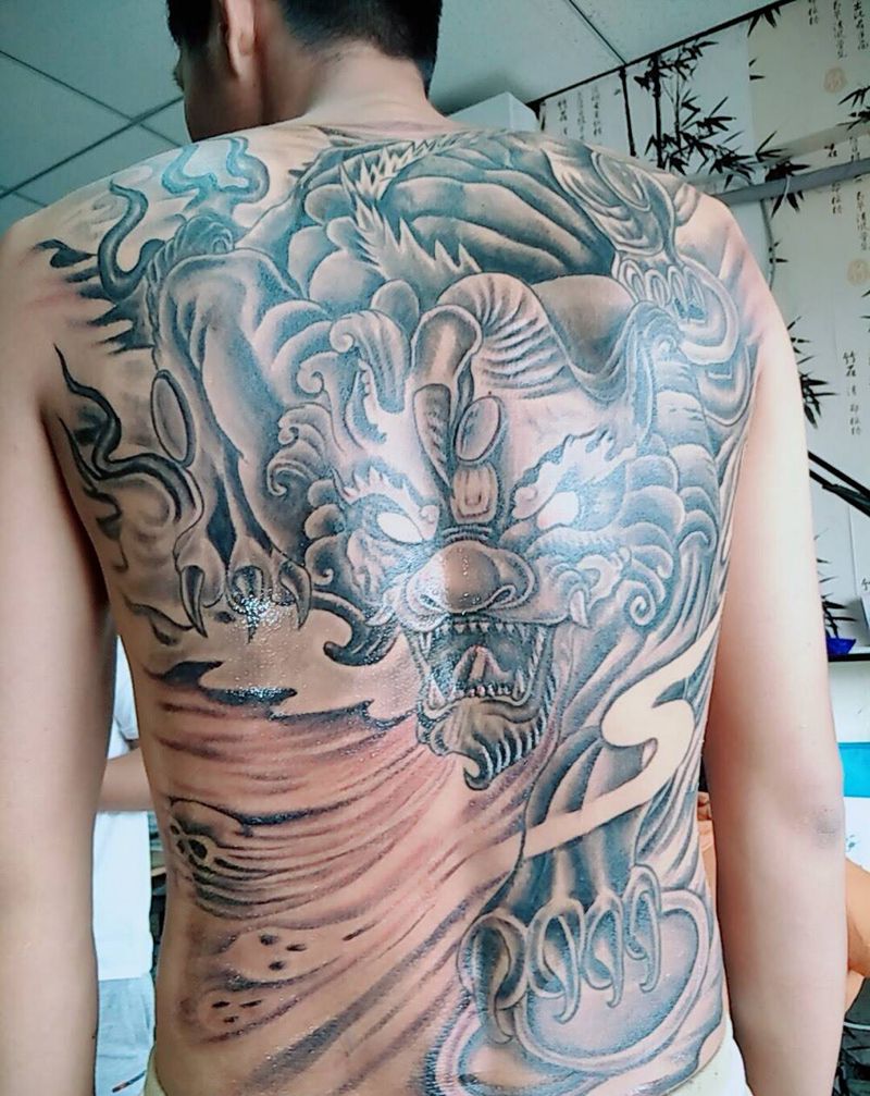 • 黑灰满背纹身图案