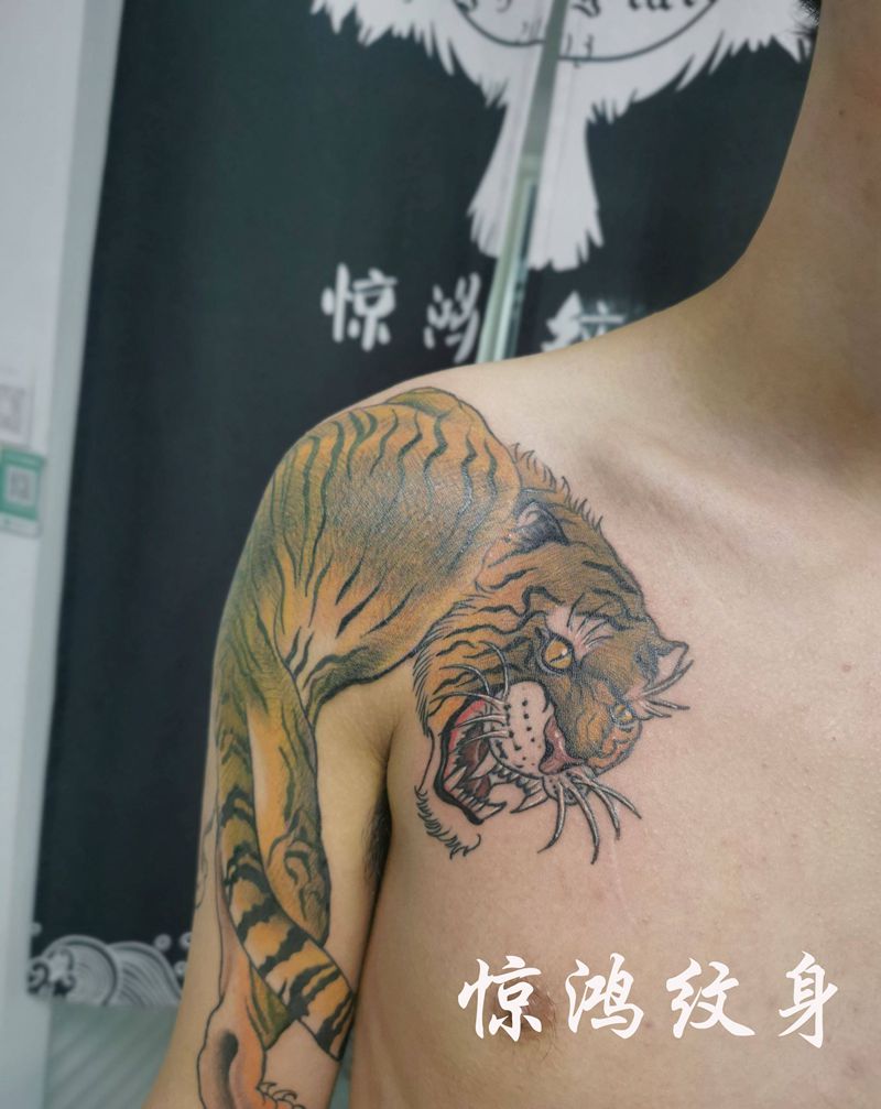 本店近期作品纹身图片_胸部背部新传统水墨纹身图案