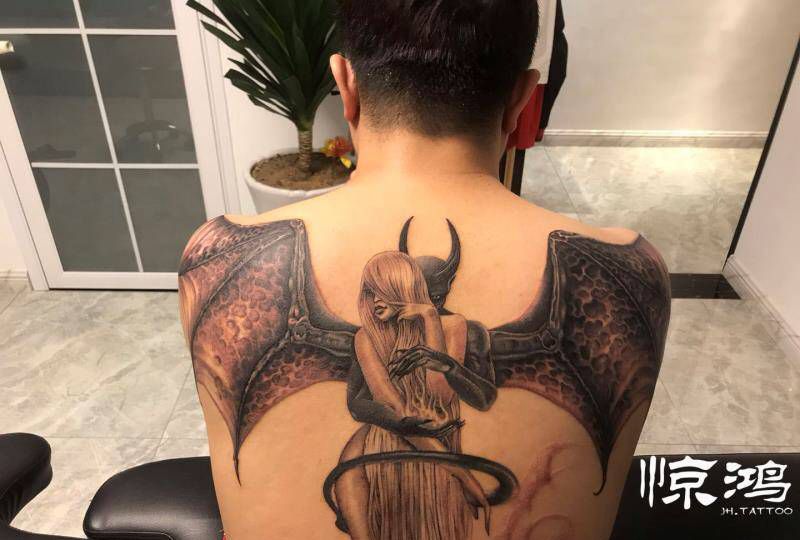 惊鸿纹身近期作品纹身图片_臀部背部新传统欧美写实纹身图案