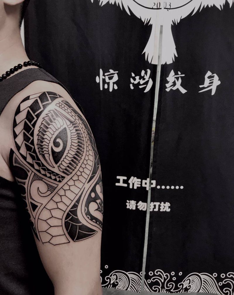 • 纹身吧推荐的披肩图腾半胛纹身图案作品展示