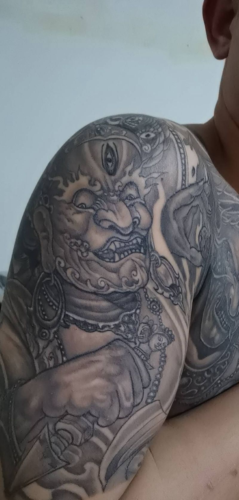 当前位置: 首页 >辽宁省鞍山市纹身店-龍刺青纹身图案>冥王 大黑天半甲纹身图片_手臂胸部新传统纹身图案