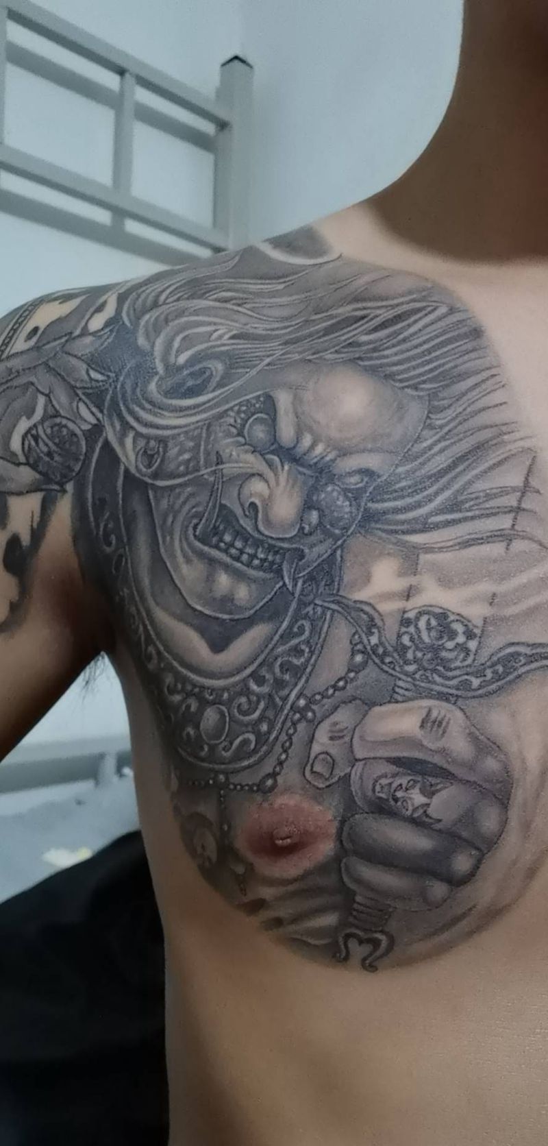 当前位置: 首页 >辽宁省鞍山市纹身店-龍刺青纹身图案>冥王 大黑天半甲纹身图片_手臂胸部新传统纹身图案