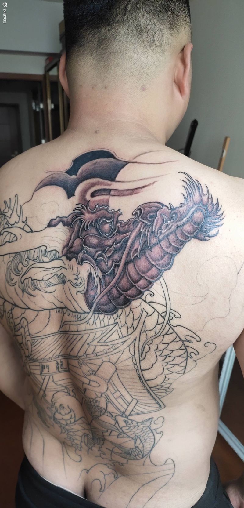 当前位置: 首页 >辽宁省鞍山市纹身店-龍刺青纹身图案>鲤鱼跃龙门未完纹身图片_背部新传统纹身图案