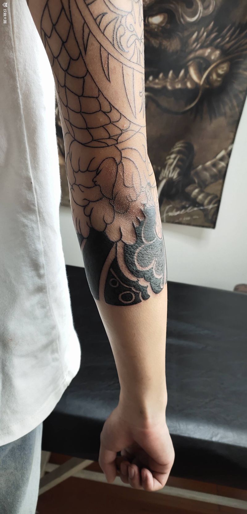 当前位置: 首页 >辽宁省鞍山市纹身店-龍刺青纹身图案>半甲七分袖未完纹身图片_手臂老传统纹身图案