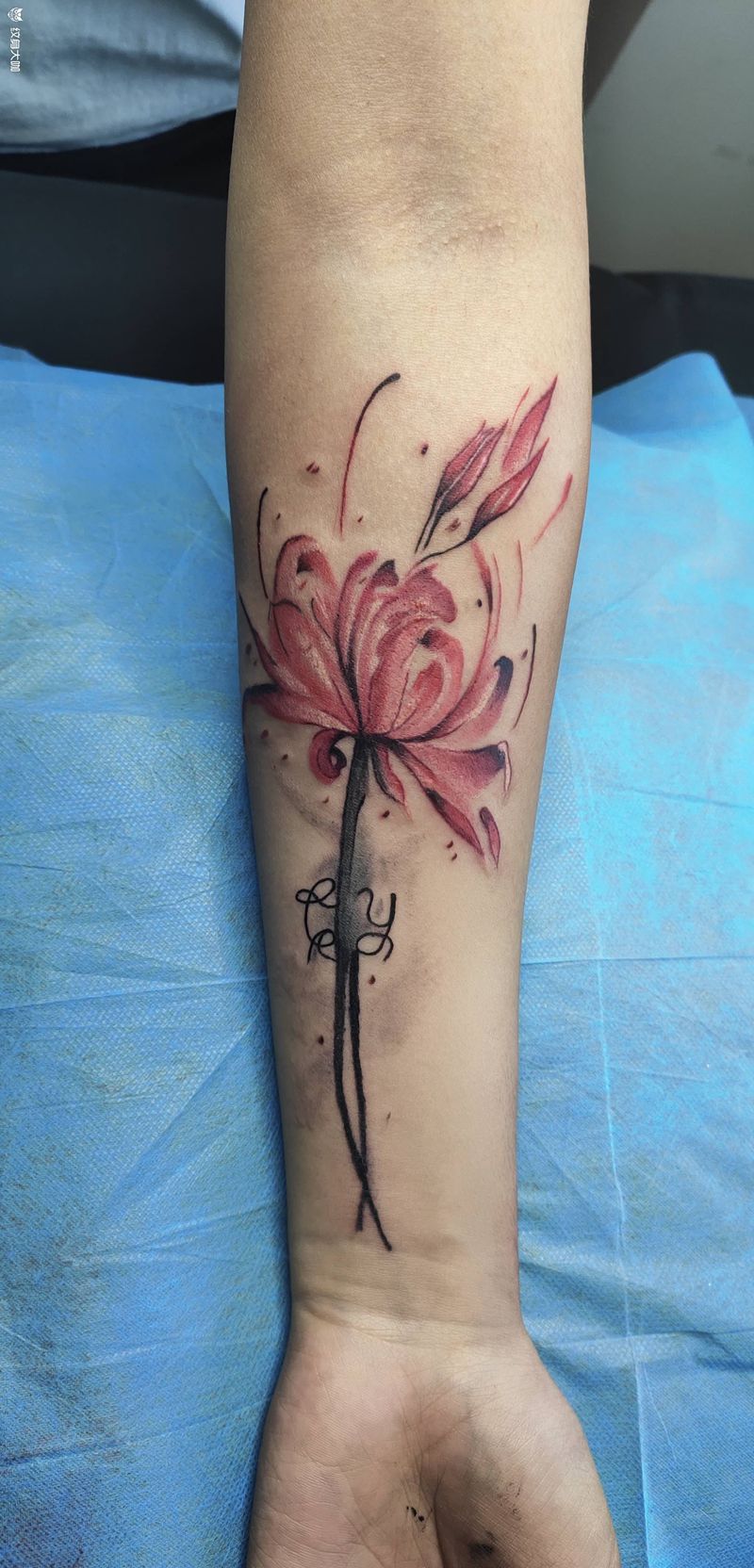 彼岸花纹身图片_手臂水彩纹身图案