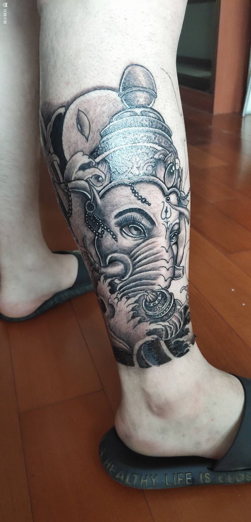 包小腿 一侧纹身图片_腿部新传统纹身图案