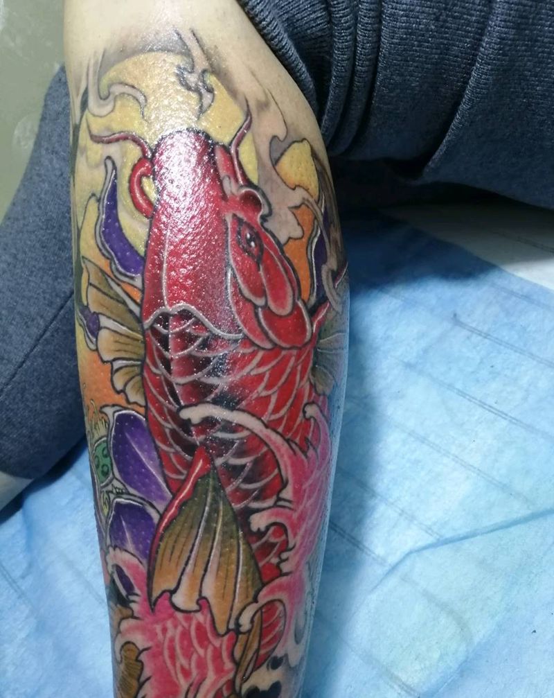 • T网红王老大花腿龙纹身图片_腿部新传统纹身图案