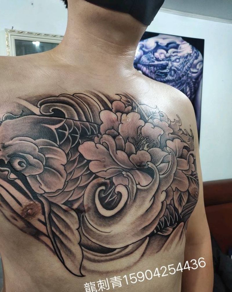当前位置: 首页 >辽宁省鞍山市纹身店-龍刺青纹身图案>鲤鱼花胸纹身图片_胸部新传统纹身图案