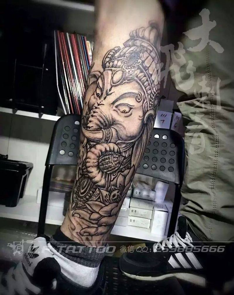 当前位置: 首页 >辽宁省大连市纹身店-飞·刺青工作室纹身图案>象神纹身图片_成品腿部象神纹身图案