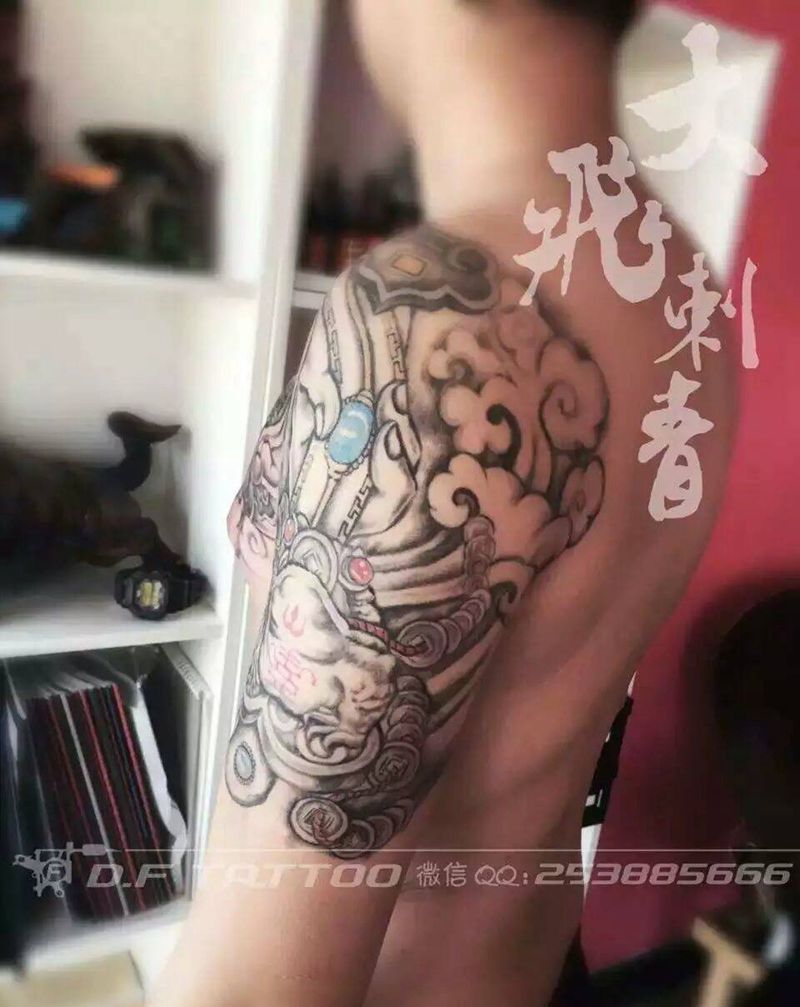 当前位置: 首页 >辽宁省大连市纹身店-飞·刺青工作室纹身图案>二郎神金蟾半甲纹身图片_手臂胸部传统二郎神金蟾纹身图案
