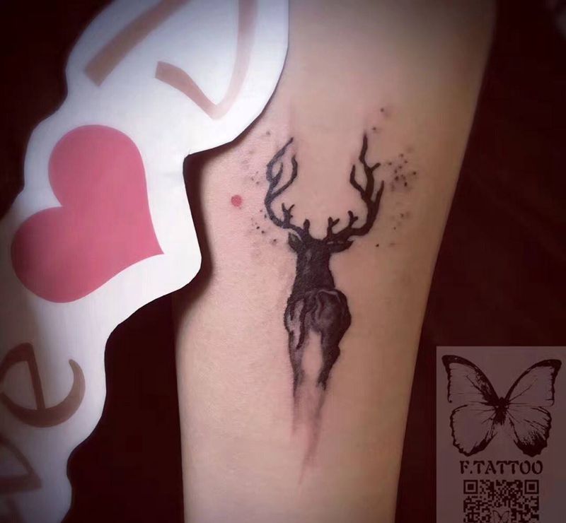 当前位置: 首页 >辽宁省大连市纹身店-飞·刺青工作室纹身图案>鹿纹身图片_成品手臂腿部清新动物鹿写意纹身图案