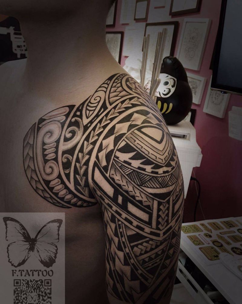 • 纹身吧推荐的披肩图腾半胛纹身图案作品展示