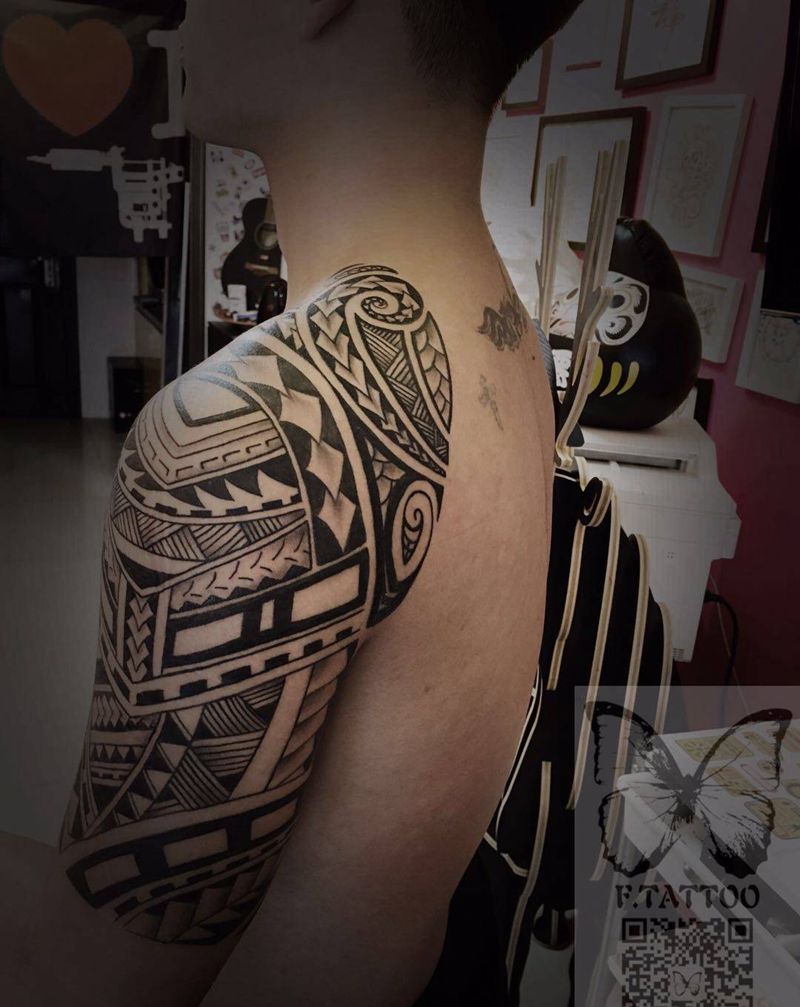 • 纹身吧推荐的披肩图腾半胛纹身图案作品展示