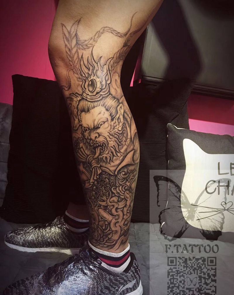 大圣+龙纹身图片_成品腿部传统齐天大圣悟空龙大连纹身图案