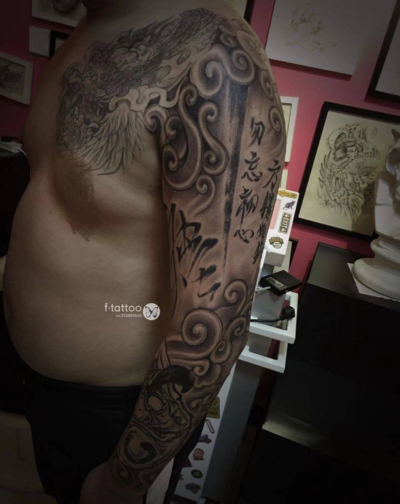 当前位置: 首页 >辽宁省大连市纹身店-飞·刺青工作室纹身图案>随性花臂.纹身图片_手臂老传统水墨毛笔字竹子花臂纹身图案