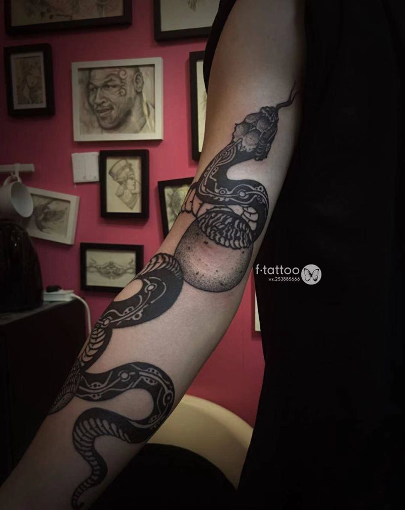 当前位置: 首页 >辽宁省大连市纹身店-飞·刺青工作室纹身图案>蛇纹身图片_手臂欧美写实蛇school纹身图案