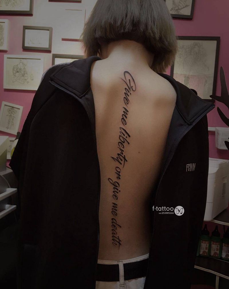 不自由 毋宁死.纹身图片_背部英文字母小清新纹身图案