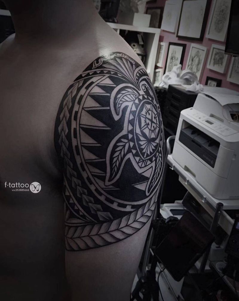 • 纹身吧推荐的披肩图腾半胛纹身图案作品展示