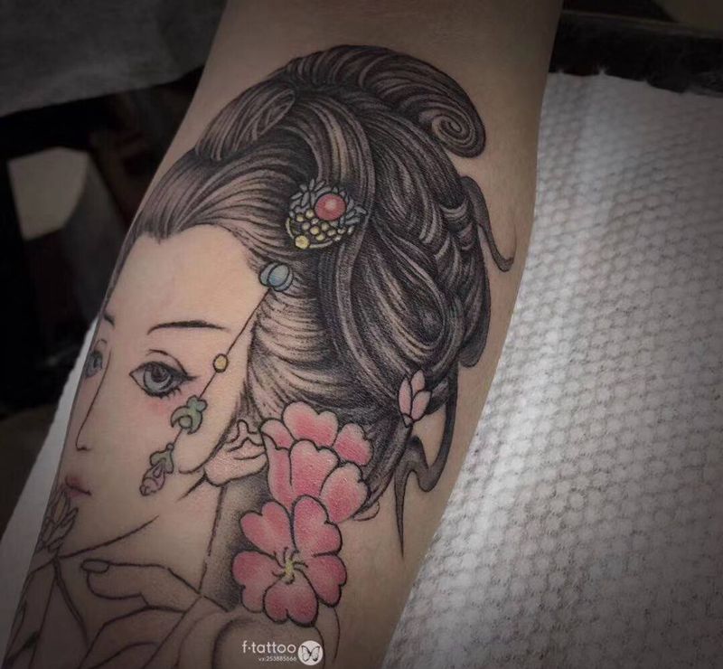 艺伎.纹身图片_手臂艺伎清新传统纹身图案