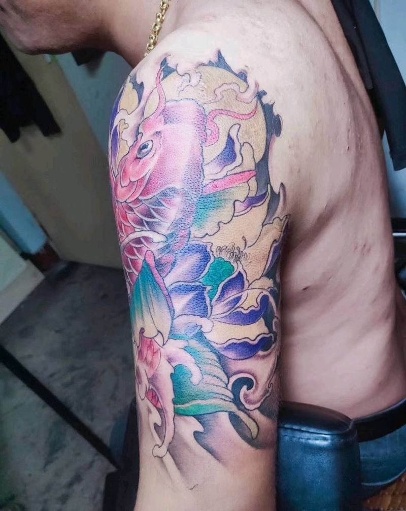 当前位置: 首页 >辽宁省鞍山市纹身店-天道刺青纹身图案>大臂鲤鱼纹身图片_新传统纹身图案