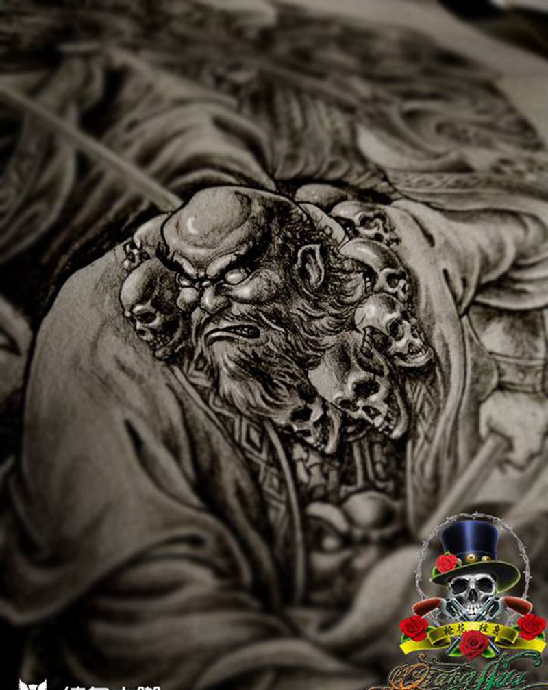• H传统钟馗纹身 钟馗过肩纹身图案