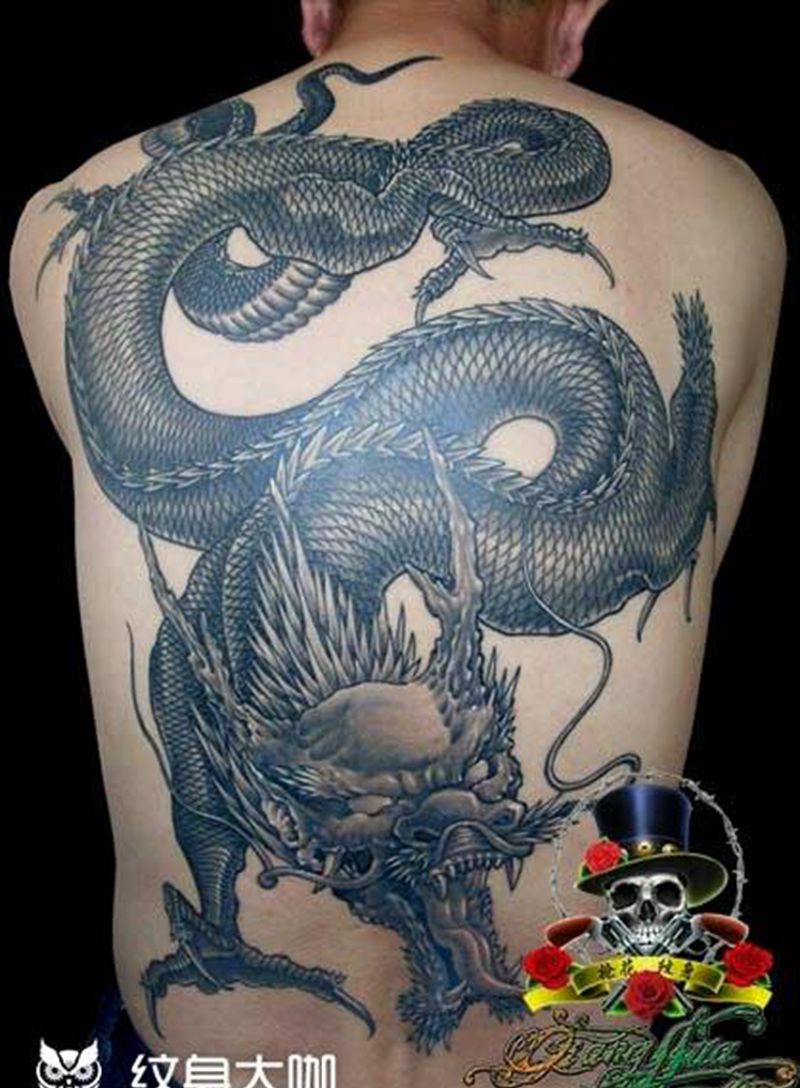 黑灰满背纹身图案