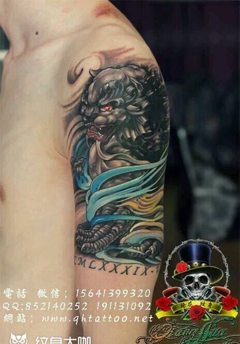 当前位置: 首页 >辽宁省抚顺市纹身店-枪花纹身机构纹身图案>唐狮子纹身图片_手臂传统动物成品纹身图案