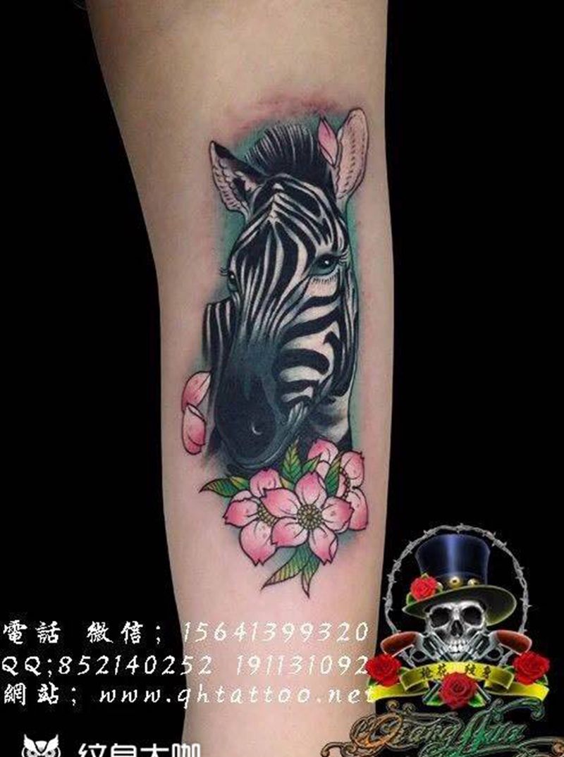 斑马斑马纹身图片_成品手臂清新动物纹身图案