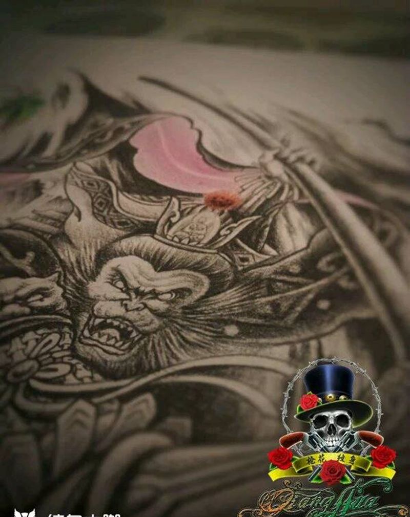 当前位置: 首页 >辽宁省抚顺市纹身店-枪花纹身机构纹身图案>斗战胜佛纹身图片_背部传统人物鬼神宗教原创成品手稿纹身图案