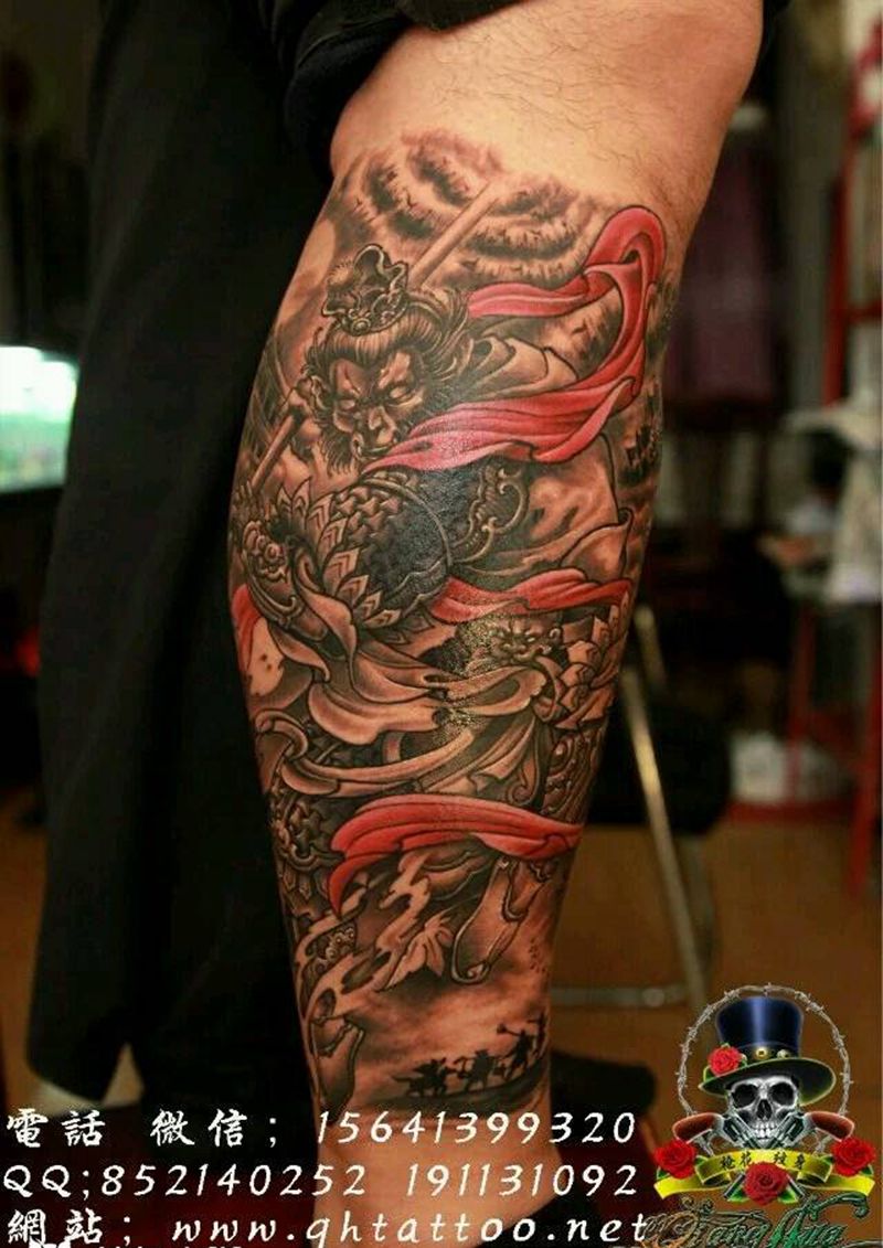 大闹天宫纹身图片_腿部传统肖像人物鬼神宗教成品纹身图案