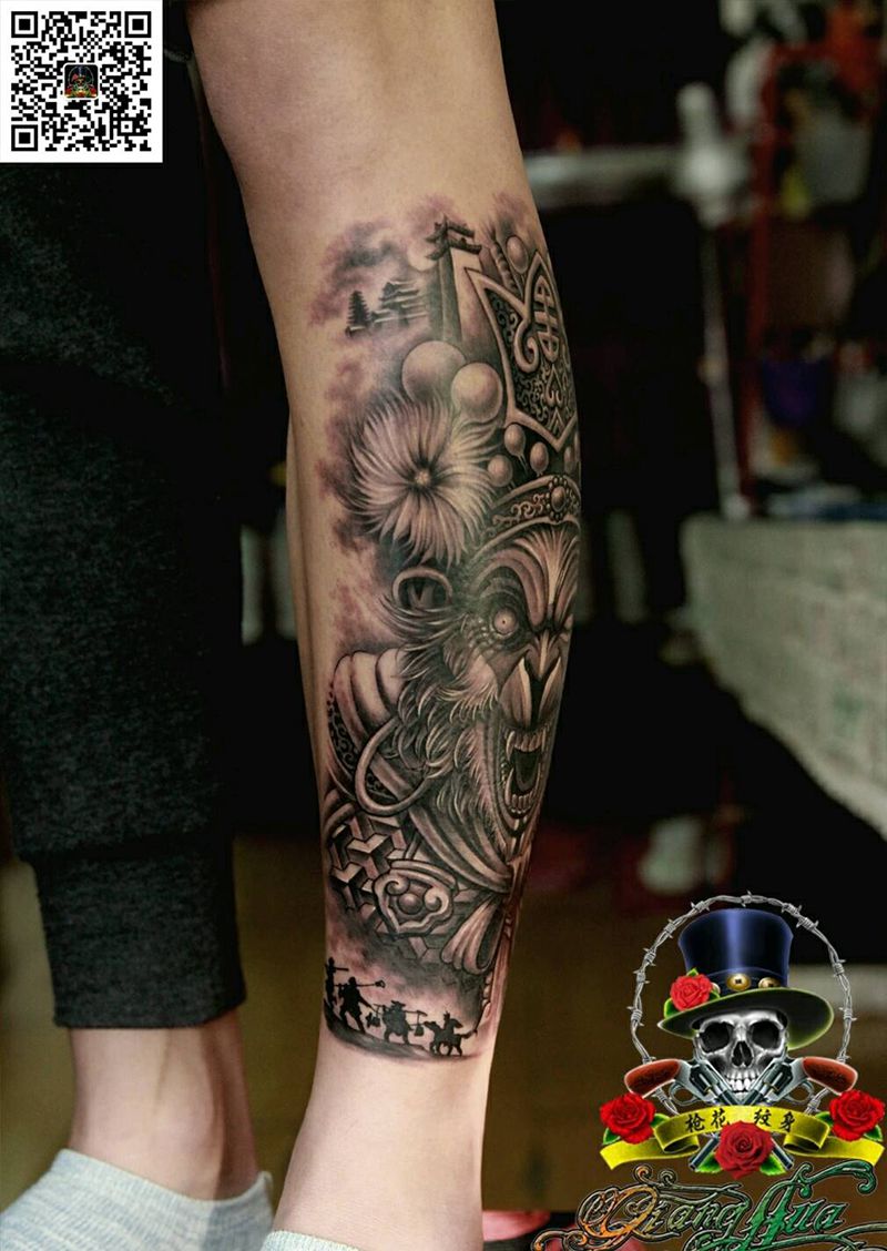 大圣纹身图片_腿部传统鬼神宗教成品纹身图案