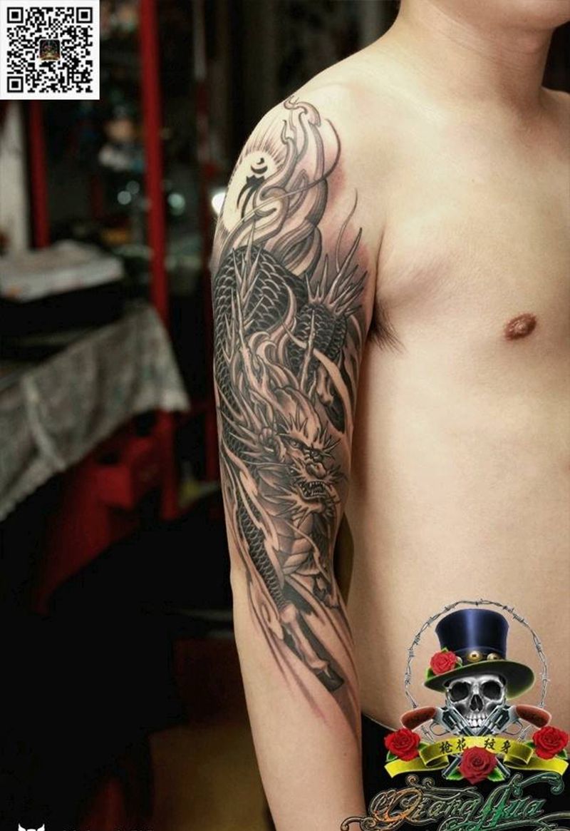 • T网红王老大花腿龙纹身图片_腿部新传统纹身图案
